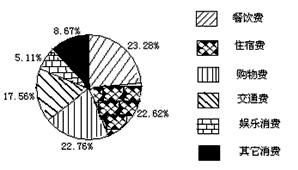 据2005年5月8日报道:今年“五一 黄金周期间,我市实现旅游收入再创历史新高,旅游消费呈现多样化,各项消费所占的比例如图秘所示,其中住宿消费为3438.24万元. 则餐饮消费为 万元 查看更多