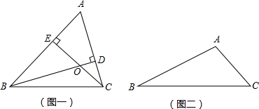 (2)如图二,若∠A为钝角,请画出AB、AC边上的高CE、BD,CE、BD所在直线交于点O,则∠BAC+∠BOC=______°,再用你已学过的数学知识加以说明.