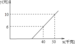 某长途汽车客运公司规定旅客可免费随身携带一定质量的行李,如果超过规定的质量,则需购买行李票,行李费用y(元)是行李质量x(千克)的一次函数,其图象如图所示,旅客最多可免费携带行李的质量是(    )千克。