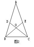 如图2,在△ABC中,AB=AC,∠A=36°,两条角平分线BD、CE相交于点O,则图中全等等腰三角形有 ( )