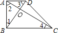 在梯形ABCD中,AD∥BC,∠ABC=90°,对角线AC、BD相交于点O.下列条件中,不能判断对角线互相垂直的是( )