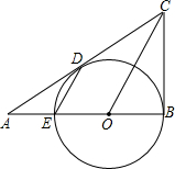 如图,已知三角形ABC中,∠B=90°,O是AB上一点,以O为圆心,OB为半径的圆与AB交于精英家教网点E,与AC切于点D.
