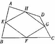 如图,四边形ABCD中,点E、F、G、H分别是边AB、BC、CD、DA的中点,顺次连接E、F、G、H,得到的四边形EFGH叫中点四边形.![]()