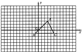 方格纸中的每个小方格都是边长为1的正方形,我们把以格点间连线为边的三角形称为“格点三角形”,图中的△ABC是格点三角形,在建立平面直角坐标系后,点B的坐标为(-1,-1)。