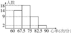,心率在67.5~75范围内的学生占统计人数的比例是