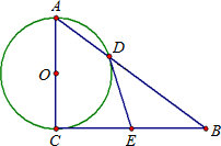 如图,以Rt△ABC的直角边AC为直径作⊙O,交斜边AB于点D,E为BC边的中点,连DE.