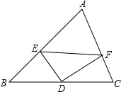 如图:在△ABC中,点D、E分别在AB、AC上,∠ADE=∠C,且AD∶AC=2∶3,那么DE∶BC等于( )![]()