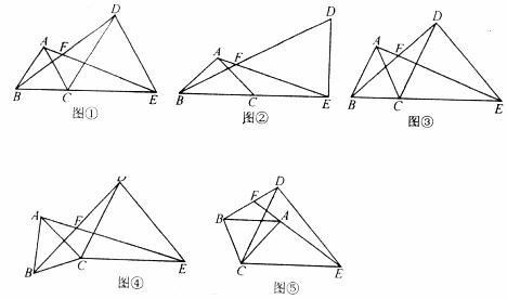 (3)将图③中的△ABC绕点C旋转(点F不与点A、B重合),得图④或图⑤。在图④中,