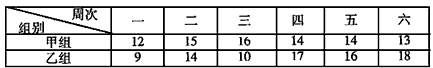 某班实行小组量化考核制,为了了解同学们的学习情况,王老师对甲、乙两个小组连续六周的综合评价得分进行了统计,并将得到的数据制成如下的统计表: