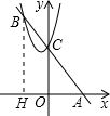 精英家教网已知:如图所示,一次函数有y=-2x+3的图象与x轴、y轴分别交于A、C两点,二次函数y=x2+bx+c的图象过点C,且与一次函数在第二象限交于另一点B,若AC:CB=1:2,那么这二次函数的顶点坐标为