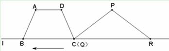 如图,在梯形ABCD中,AD∥BC,AB=AD=DC=2cm,BC=4cm,在等腰△PQR中,∠QPR=120°,底边QR=6cm,点B、C、Q、R在同一直线l上,且C、Q两点重合,如果等腰△PQR以1cm/秒的速度沿直线l箭头所示方向匀速运动,t秒时梯形ABCD与等腰△PQR重合部分的面积记为S平方厘米。