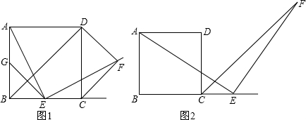 点G是正方形ABCD边AB的中点,点E是射线BC上一点,∠AEF=90°,且EF交正方形外角平分线CF于点F,连接EG.