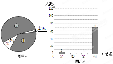 【小题2】(2)求图甲中④所在扇形的圆心角,并补全图乙;