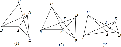 如图,在△ABC和△ADE中,AB=AC,AD=AE,∠BAC=∠DAE, 连接BD、CE,BD和CE相交于点F,若△ABC不动,将△ADE绕点A任意旋转一个角度.