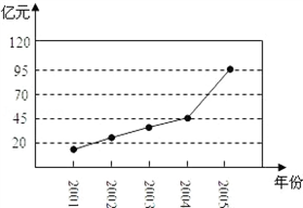 如图是根据我市2001年至2005年财政收入绘制的折线统计图,观察统计图可得:同上年相比我市财政收入增长速度最快的年份是    年,比它的前一年增加    亿元.