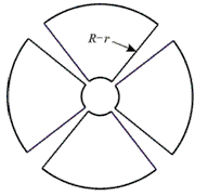 一园林设计师要使用长度为4L的材料建造如图1所示的花圃,该花圃是由四个形状、大小完全一样的扇环面组成,每个扇环面如图2所示,它是以点O为圆心的两个同心圆弧和延长后通过O点的两条直线段围成,为使得绿化效果最佳,还须使得扇环面积最大.![]()