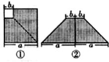 7、如图,图①是边长为a的正方形中有一个边长是b的小正方形,图②是将图①中的阴影部分剪拼成的一个等腰梯形,比较图①和图②阴影部分的面积,可验证的乘法公式是