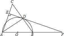 如图,在△ABC中,AB=AC,以AB为直径作半圆⊙0,交BC于点D,连接AD,过点D作DE⊥AC,垂足为点E,交AB的延长线于点F.