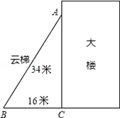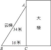 精英家教网如图,消防云梯的长度是34米,在一次执行任务时,它只能停在离大楼16米远的地方,则云梯能达到大楼的高度是