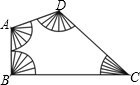 18、以四边形ABCD各个顶点为圆心,1cm长为半径画弧,则图中阴影部分面积之和是