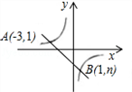 如图所示,已知一次函数y=kx+b与反比例函数的图象交于点A(﹣3,1),B(1,n)