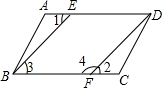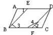 19、如图,已知AD∥BC,∠1=∠2,要证∠3+∠4=180°,请完善证明过程,并在括号内填上相应依据:
