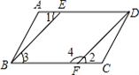 如图,已知AD∥BC,∠1=∠2,要证∠3+∠4=180°,请完善证明过程,并在括号内填上相应依据: