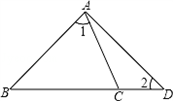 如图,AD=BC=BA,那么∠1与∠2之间的关系是