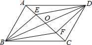 如图,在□ABCD中,对角线AC与BD交于O点,已知点E、F分别是BD上的点,请你添加一个条件 ,使得四边形AFCE是一个平行四边形。![]()