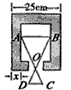 已知零件的外径为25cm.要求它的厚度x .需先求出它的内孔直径AB.现用一个交叉卡钳去量.若OA∶OC=OB∶OD=3.CD=7cm.求此零件的厚度x. 查看更多