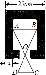 已知零件的外径为25cm,要求它的厚度x,需先求出它的内孔直径AB,现用一个交叉卡钳(AC和BD的长相等)去量(如图),若OA:OC=OB:OD=3,CD=7cm.求此零件的厚度x.