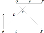 如图,边长分别为4和8的两个正方形ABCD和CEFG并排放在一起,连结BD并延长交EG于点T,交FG于点P,则GT=