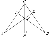如图,在等腰△ABC中,CH是底边上的高线,点P是线段CH上不与端点重合的任意一点,连结AP交BC于点E,连结BP交AC于点F.![]()