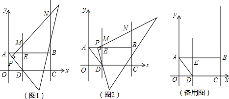(3)如图2,当点P在线段AB上移动时,设P点坐标为(x,2),记△DBN的面积为S,请直接写出S与x之间的函数关系式,并求出S随x增大而减小时所对应的自变量x的取值范围.