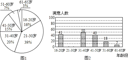 (2)已知被抽查的300人中有83%的人对博览会总体印象感到满意,请你求出21~30岁年龄段的满意人数,并补全图11.