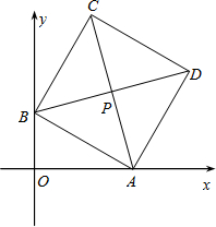 在平面直角坐标系xOy中,边长为4的正方形ABCD的对角线AC、BD相交于点P,顶点A在x轴正半轴上运动,顶点B在y轴正半轴上运动(x轴的正半轴、y轴的正半轴都不包含原点O),顶点C、D都在第一象限.