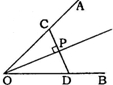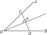 如图,P是∠AOB平分线上一点,CD⊥OP于P,并分别交OA、OB于C D,则CD_____点P到∠AOB两边距离之和.( )
