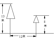 如图,校园内有两棵树,相距12米,一棵树高13米,另一棵树高8米,问一只小鸟从高树的顶端飞到矮树的顶端,至少要飞多少米?
