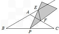 等腰△ABC.AB=AC.∠BAC=120°.P为BC的中点.小慧拿着含30°角的透明三角板.使30°角的顶点落在点P.三角板绕P点旋转. (1)如图1.当三角板的两边分别交AB.AC于点E.F时.说明:△BPE∽△CFP, (2)操作:将三角板绕点P旋转到图2情形时.三角板的两边分别交BA的延长线.边AC于点E.F. ① 探究1:△BPE与△CFP还相似吗? ② 探究2:连结EF.△BPE与△PFE是否相似?请说明理由, (3) 将三角板绕点P旋转的过程中.三角板的两边所在的直线分别与直线AB.AC于点E.F. ① △PEF是否能成为等腰三角形?若能.求出△PEF为等腰三角形时∠BPE的度数,若不能.请说明理由. ② 设BC=8.EF=m.△EPF的面积为S.试用m的代数式表示S. 【查看更多】