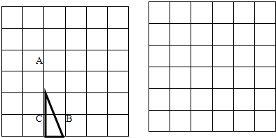 21、如图,在△ABC中(顶点都在格点上),BC=1,AC=2,∠C=90°,请在右边的方格纸中画出△A′B′C′,使得△A′B′C′∽△ABC,且相似比为2:1.