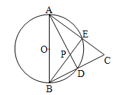 如图所示,在△ABC 中,AB=AC,以AB为直径的⊙O交AC于点E,交BC于点D,连结BE、AD交于点P。