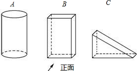 如图所给的A、B、C三个几何体中,按箭头所示的方向为它们的正面,设A、B、C三个几何体的主视图分别是A1、B1、C1;左视图分别是A2、B2、C2;俯视图分别是A3、B3、C3.