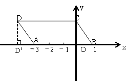 如图,平行四边形ABCD的边长AB=4,BC=2,若把它放在直角坐标系内,使AB在x轴上,点C在y轴上,点A的坐标是(-3,0),求:B、C、D的坐标。