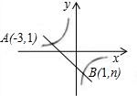 如图所示,已知一次函数y=kx+b与反比例函数数学公式的图象交于点A(-3,1),B(1,n).