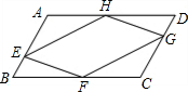 如图,ABCD中,E,F,G,H分别是AB,BC,CD,DA上的点,且AE=CG,BF=DH.试判别四边形EFGH是否是平行四边形,并说明理由.