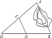 如图,要测量池塘两端A、B间的距离,在平面上取一点O,连结OA、OB的中点C、D,测得CD=35.5米,则AB=_________.