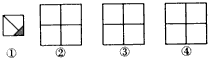 用四块如图①所示的正方形瓷砖拼成一个新的正方形,使拼成的图案是一个轴对称图形,请你在图②、图③,图④中各画一种拼法。