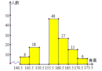 要了解某地区八年级学生的身高情况,从中随机抽取150名学生的身高作为一个样本,身高平均在140cm~175cm之间(取整数值)整理后分成7组,绘制频数分布直方图(不完整).根据图中提供的信息,解答下列问题: