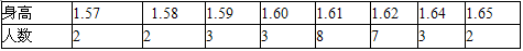 | 身高 | 1.57 | 1.58 | 1.59 | 1.60 | 1.61 | 1.62 | 1.64 | 1.65 |