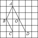 精英家教网如图,正方形网格中,每一个小正方形的边长都是1,△ABC的三个顶点都在格点(每个小正方形的顶点)上,O为AC的中点,若把△ABC绕点O顺时针旋转90°.